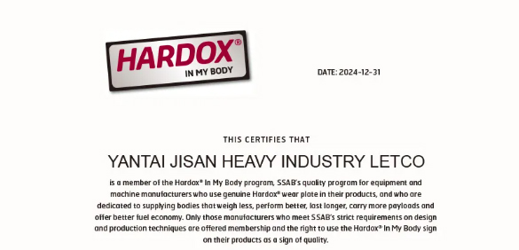 [公司動態(tài)] 金山重工連續(xù)五年受瑞典鋼鐵奧克隆德有限公司Hardox?悍達鋼授權(quán)